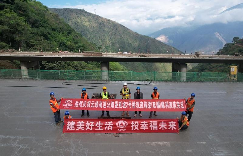 沖刺四季度丨元綠高速公路項目二分部曼延坡2號中橋現(xiàn)澆箱梁(雙幅)順利澆筑完成
